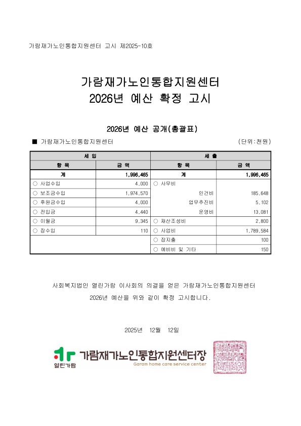 가람재가노인통합지원센터 소식을 확인해주세요.