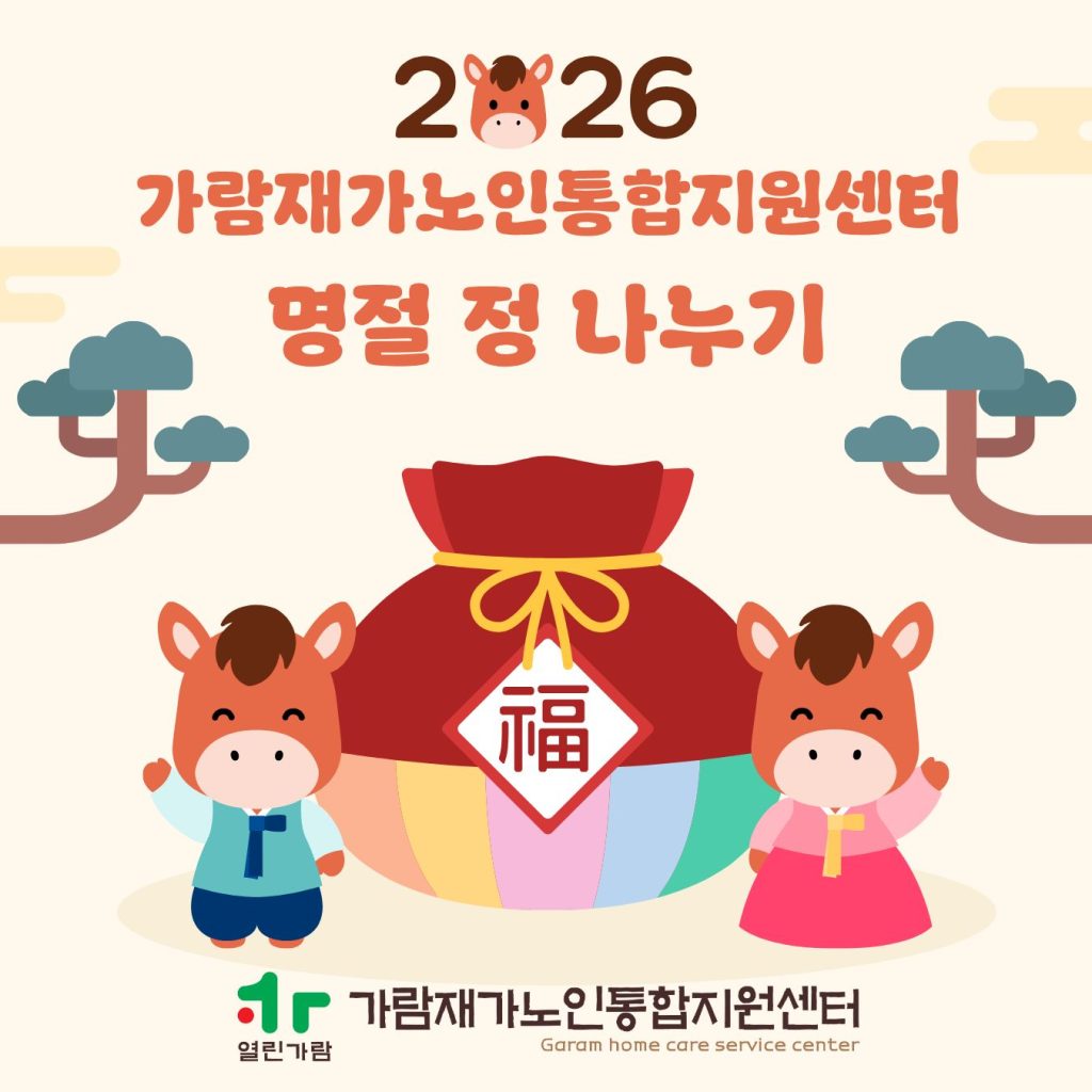 2026년 병오년 붉은 말의 해, 설을 맞이하여 재가노인지원서비스 대상 어르신들께 명절음식과 함께 안부인사를 전했습니다.