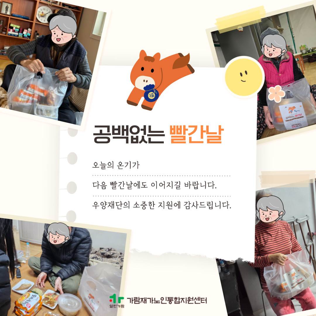 어르신들에게 전해진 온기가 다음 빨간날에도 계속되길 바랍니다.